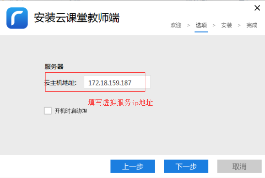 访问服务器web页面,在未登录状态下,右下角->下载安装云课堂教学管理软件,安装过程中填入HA虚拟服务IP地址。安装完成后重启教师机,确保教师端的功能使用都正常。