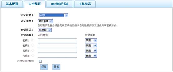 WEP:表示本设备将使用802.11协议提供的最基本的WEP安全机制。