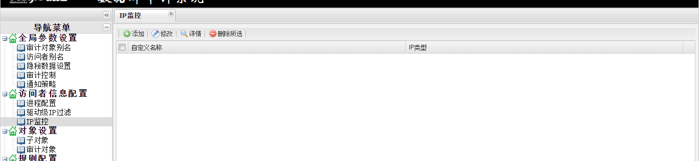 点击“访问者信息配置”-“IP监控”,打开“IP监控”配置界面,