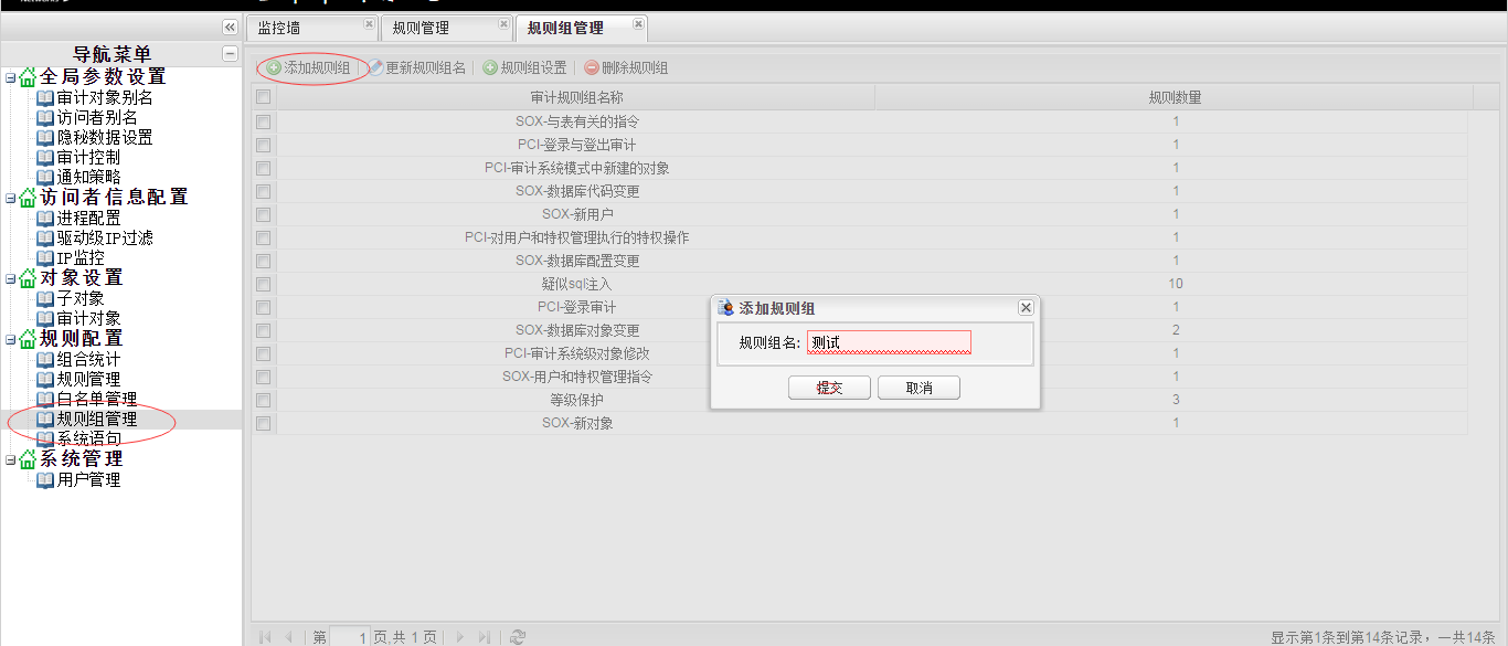 添加规则组界面