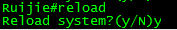 3)删除配置文件后,在ruijie#模式,输入reload命令,确认重启时,输入Y,设备重启后,恢复到出厂设置。