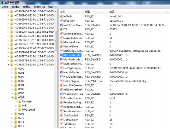 Õâ¸ö·¾¶ÏÂÓкܶà00xx£¬²éÕÒÍø¿¨ËùÔÚĿ¼£¬¾ÍÊǸոոúÄã˵Ҫ¼ÇסµÄÄÇËĸöÊý×Ö£¬ÎÒµÄÍø¿¨ÊÇIntel(R) 82579LM µÄ£¬¾ÍÊÇ0007¡£