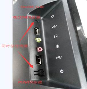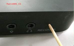 1、终端关机的时候,用牙签或者是尖锐的东西深入设备侧面的RECOVER孔,按下内部的按键,并维持常按状态。