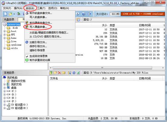 注意:请尽量使用版本号为9.5.5.2960的UltraISO刻录软件(软件提取链接:http://pan.baidu.com/s/1geS4TpT 密码:i1m5),其它版本的UltraISO软件有可能会烧录失败。