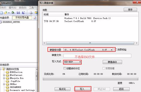 写0操作是先不选择打开ISO文件,直接对u盘写空文件操作,如下图所示: