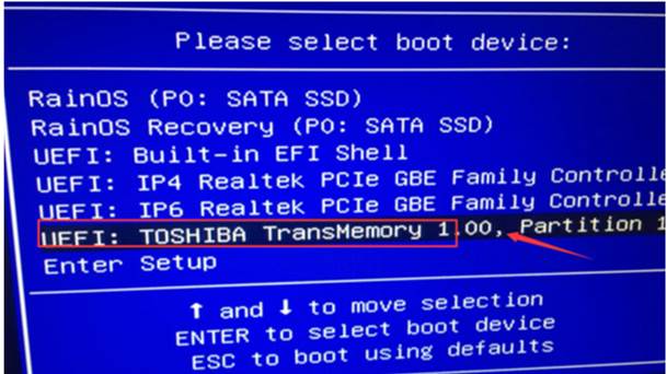4、插入刻录好的U盘后,重启终端,终端开机按F12进入如下图页面,选择您的U盘,按回车键进行灌装。