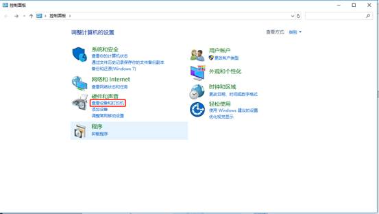 1、【控制面板】中选择【查看设备和打印机】。