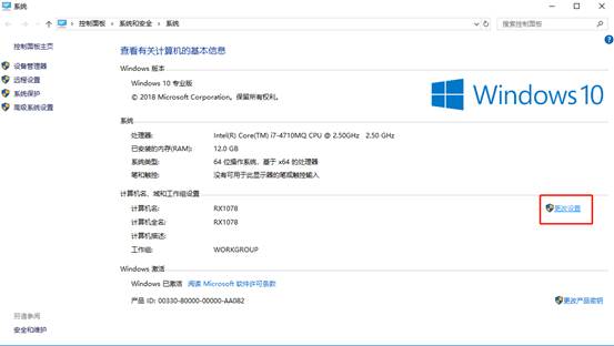 2、进入到【计算机基本信息】界面选择【更改设置】。