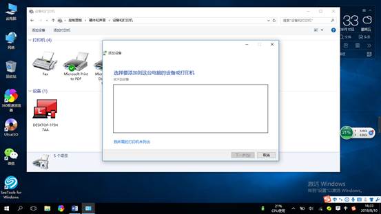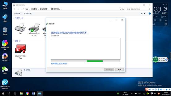 3、首先会自动扫描网络上的可用打印机(一般自动搜索不到)。