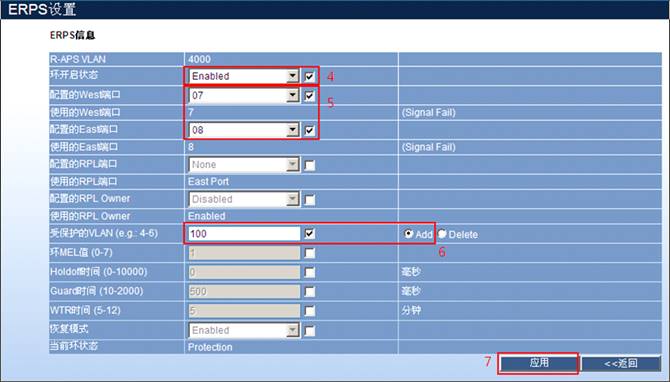 步骤2:设置R-APS VLAN为“4000”;