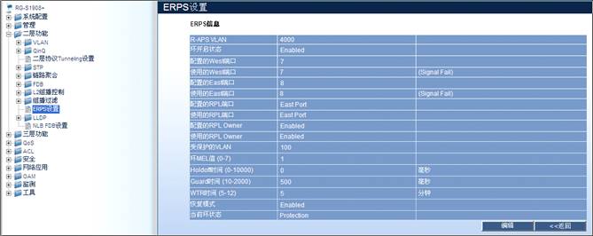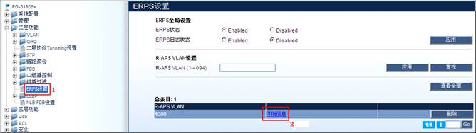 单击“二层功能”>“ERPS设置”,可在右栏查询相关信息。