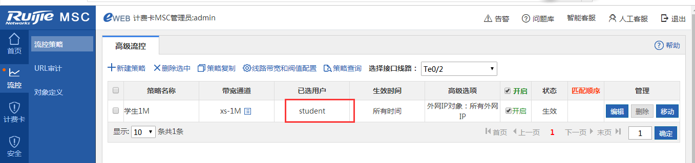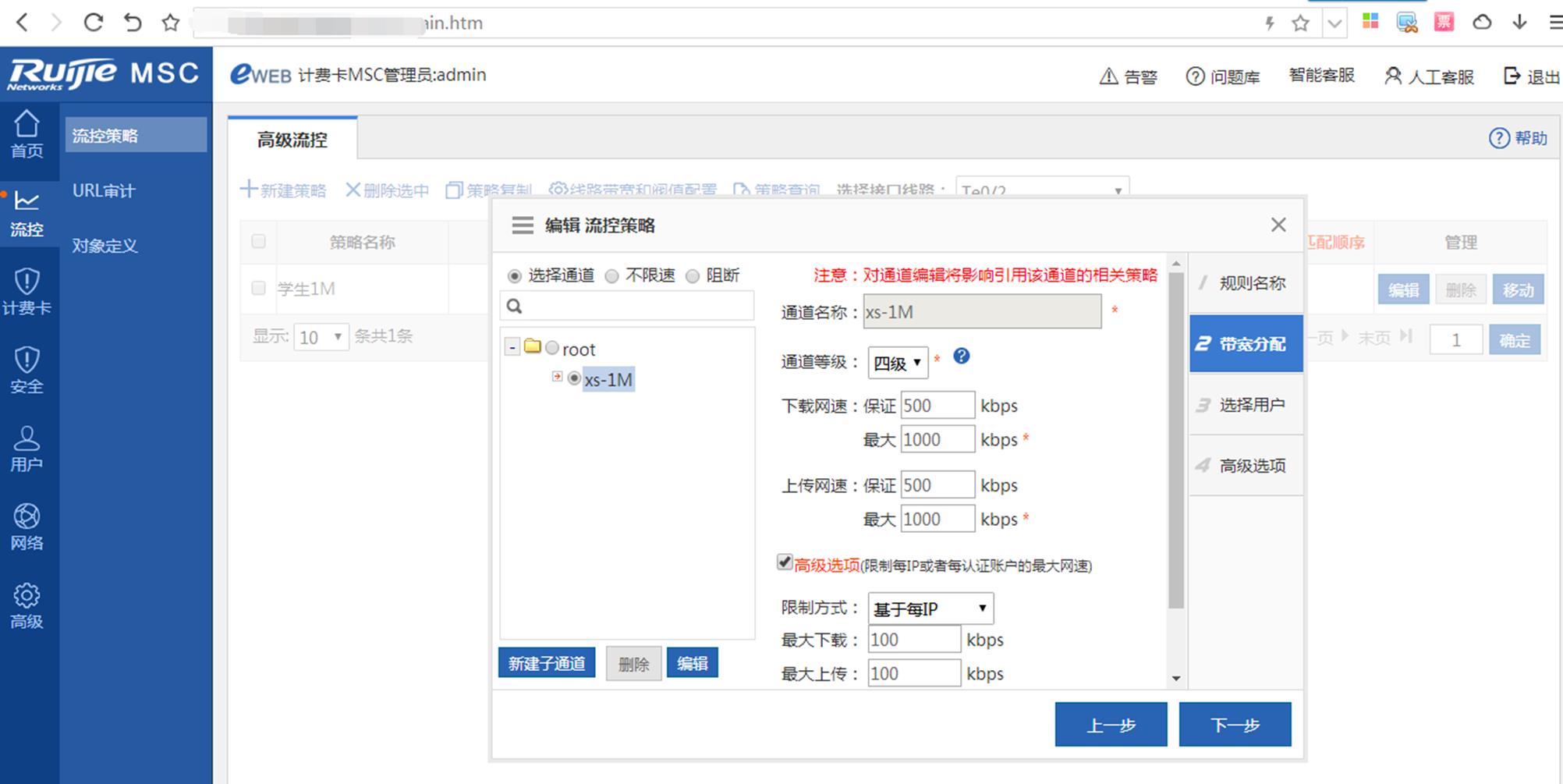 step2、学生通道1M,保障0.5M,per-ip限速100kbps,(可根据实际需求做调整)