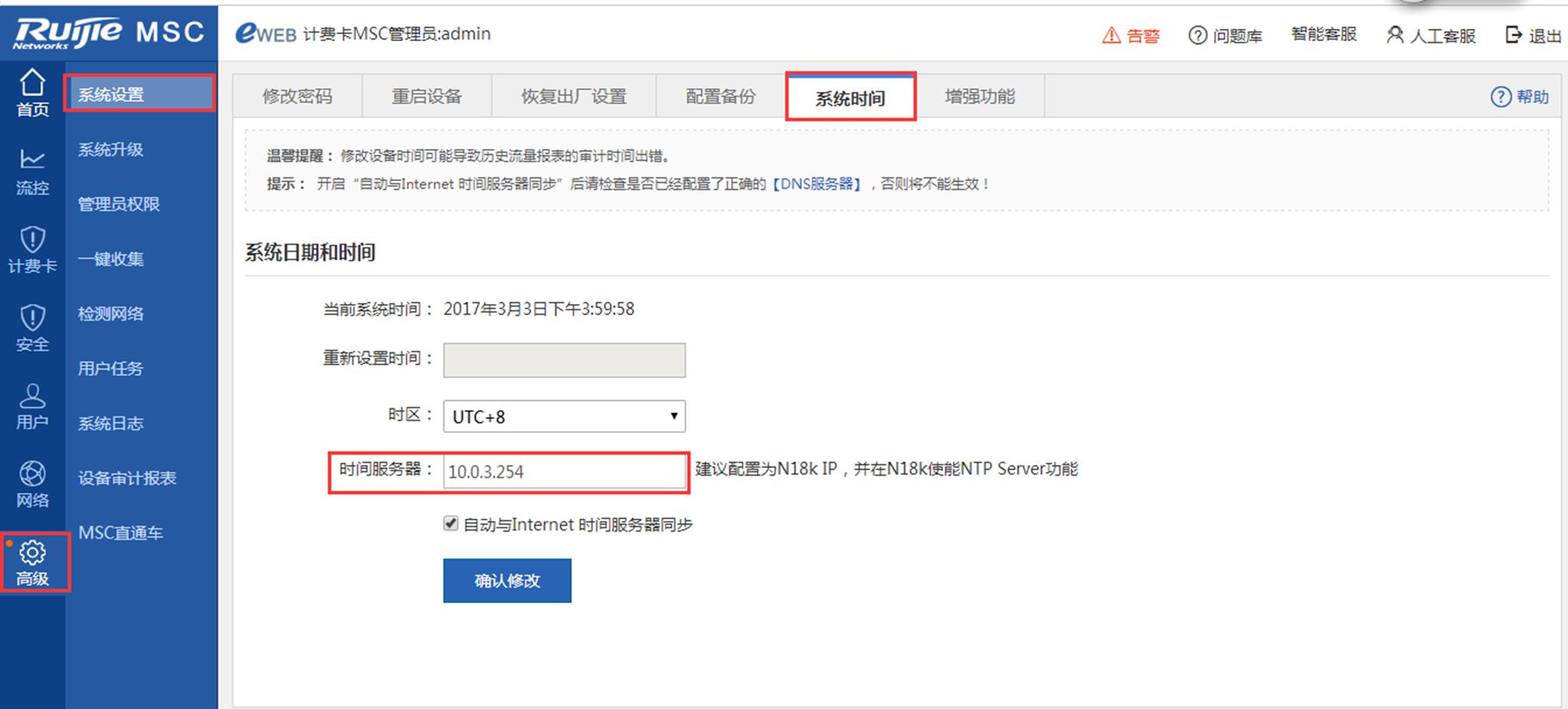 1、MSC卡时钟同步配置(必配)