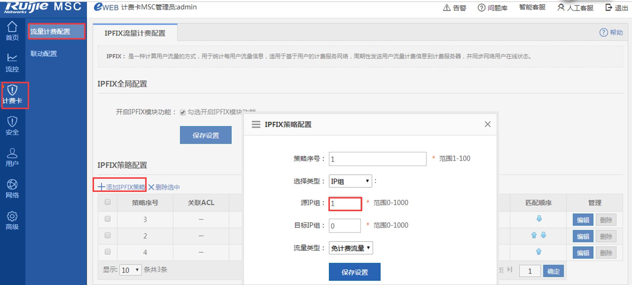 3、 IPFIX流量计费配置