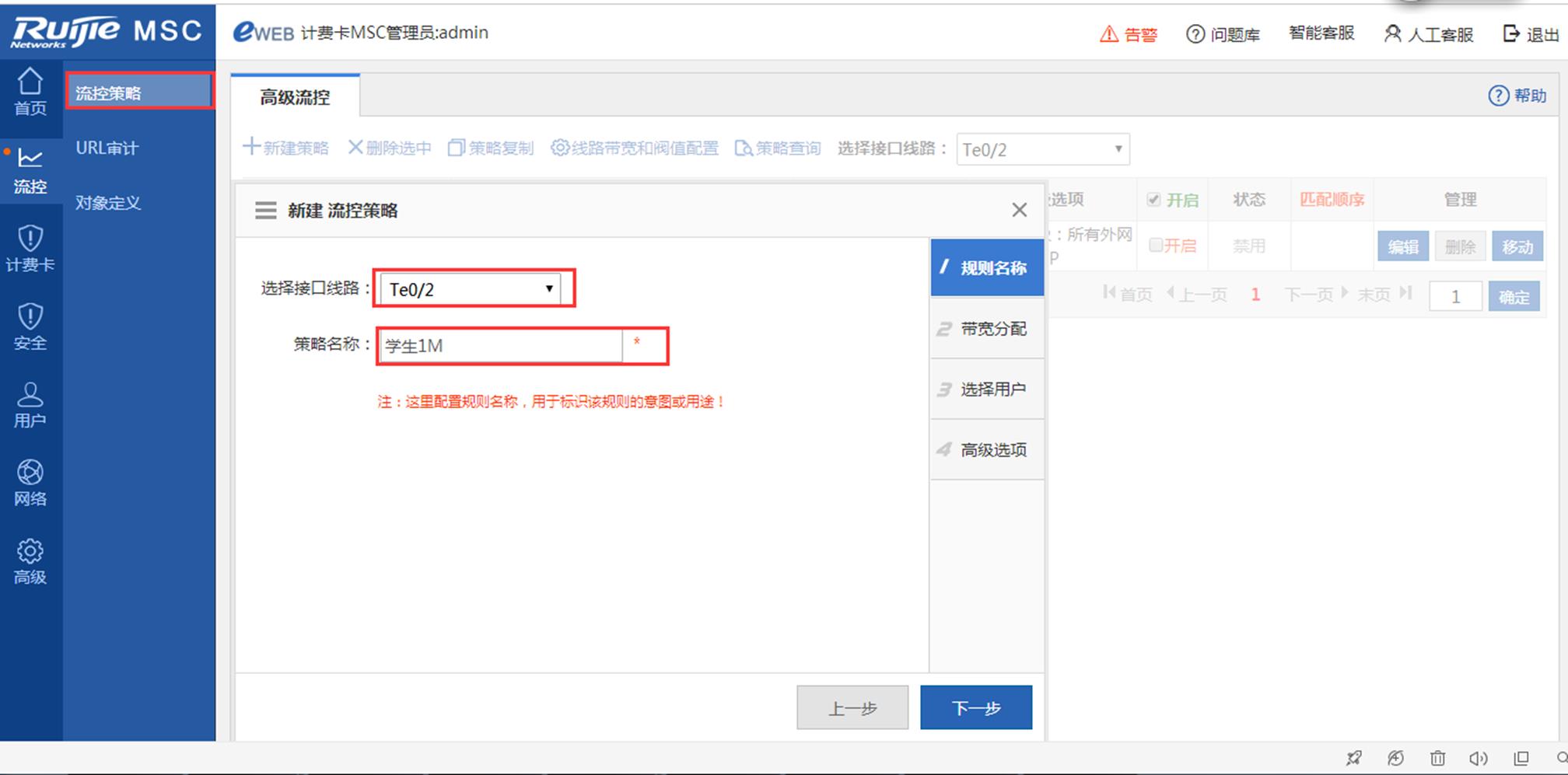 一般情况下,MSC支持基于用户组识别的限速,SAM+通过将网关策略名同步给MSC卡作为MSC卡的用户组。