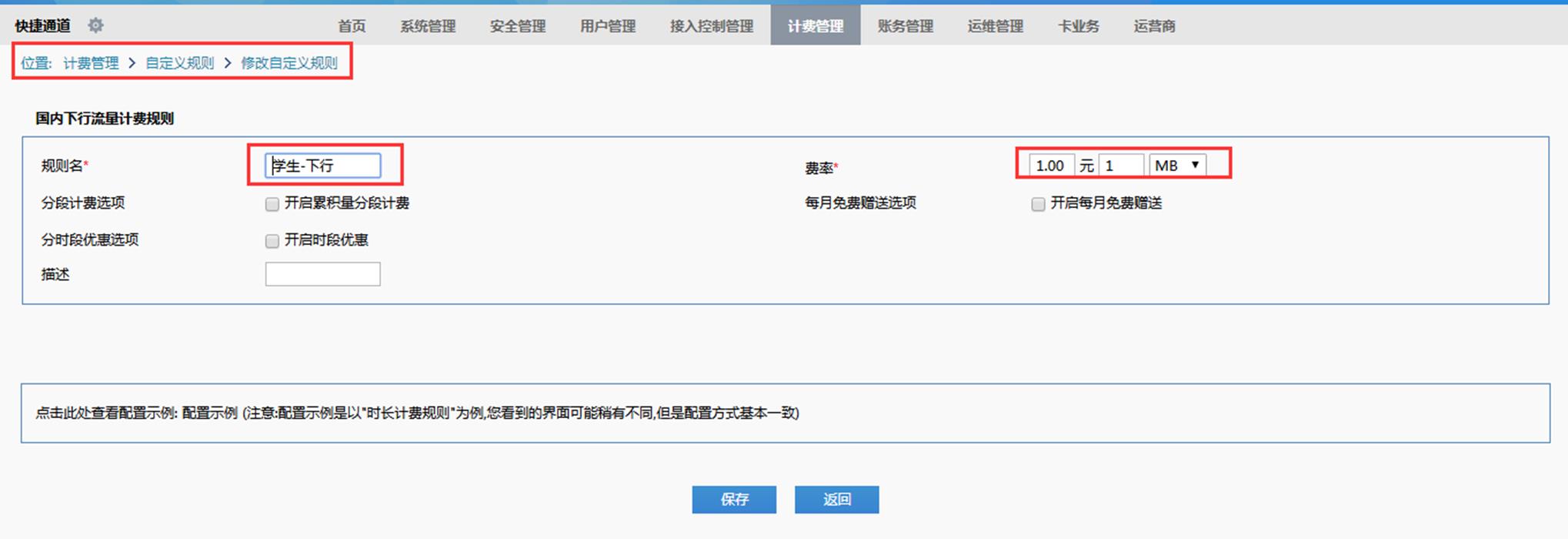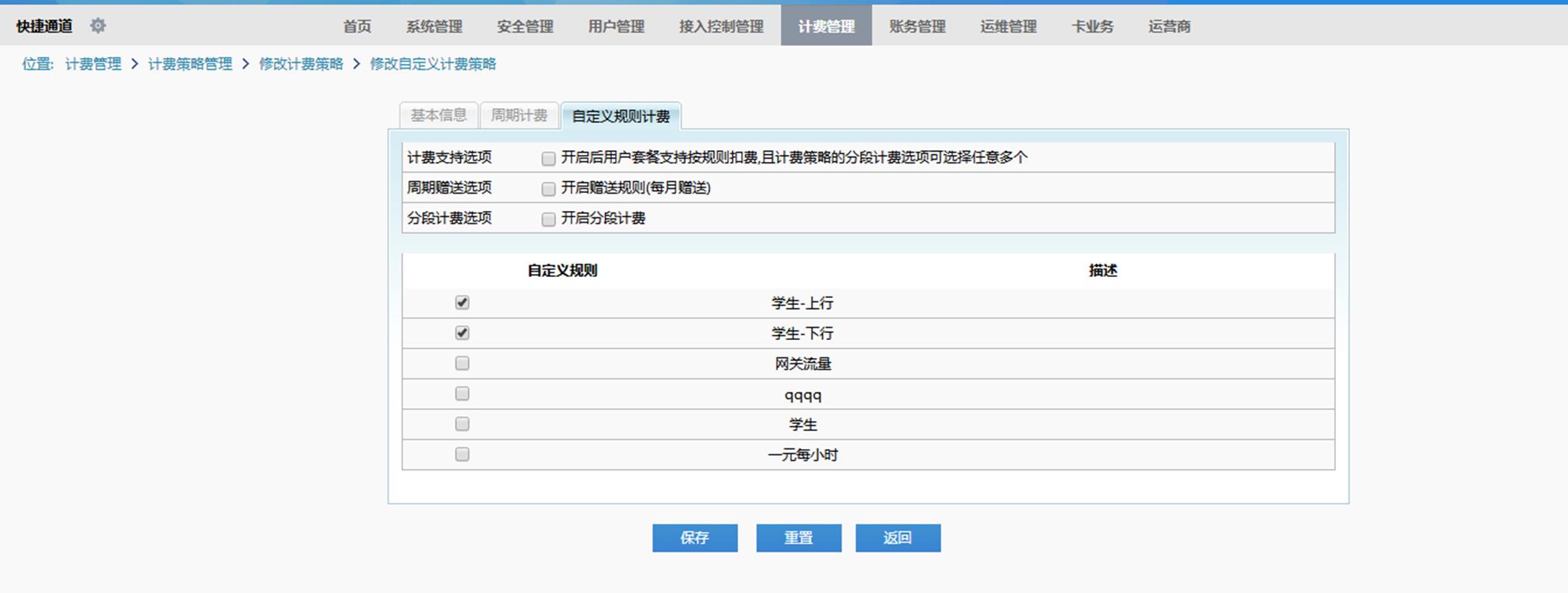 step2、自定义计费规则,学生上行,学生下行