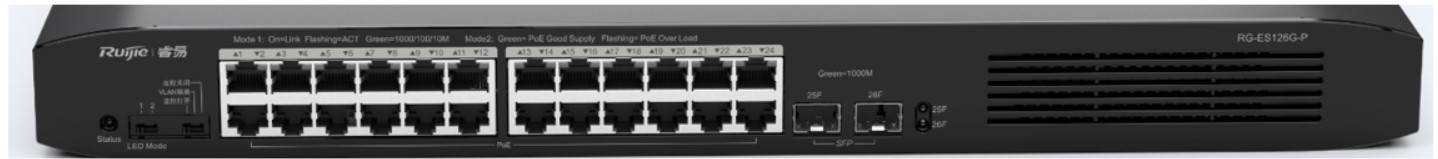 所有端口支持线缆热插拔(24个千兆电口+2个千兆光口)