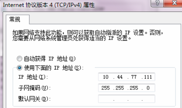 注意:电脑配置的IP地址只要是10.44.77.x即可;