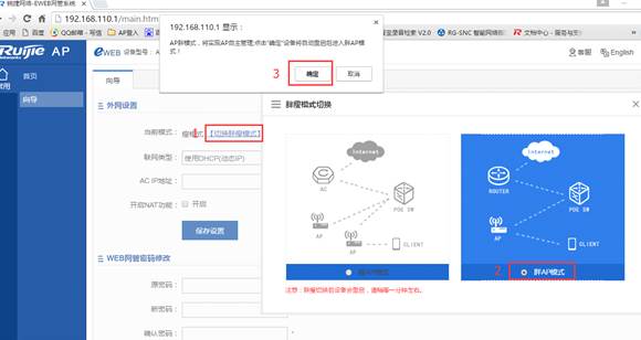 (1)点击切换胖瘦模式------胖AP模式-------确定