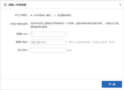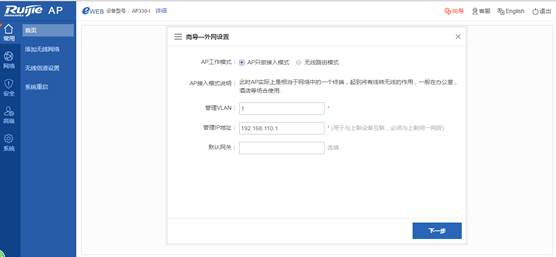 管理ip地址:可以默认192.168.110.1,也可以设置成和上联同一网段的ip地址