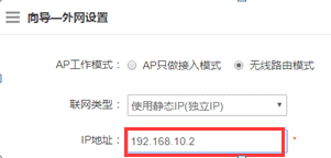 (1)若外网线连接电脑,电脑需要静态配置ip地址或者拨号才可以上网,可以配置AP做无线路由模式(以下说明配置静态IP地址,PPPOE拨号相同,只是将联网类型更改为PPPOE拨号,配置账号密码即可)
