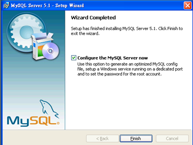 Server Setup Wizard(MySQL服务器配置向导)界面,勾选Configure the MySQL Server now(配置当前MySQL服务器)此项必勾选,再点击[Finish]。