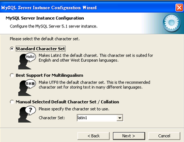 character set(默认字符集),请勾选Standard Character Set(标准字符集),再点击[Next]。
