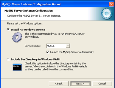 options(windows选项),请同时选择Install As Windows Service(安装为Windows服务)、Launch the