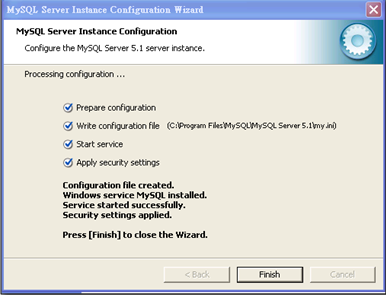 19、执行完成,点击[Finish],完成MySQL服务器的安装。