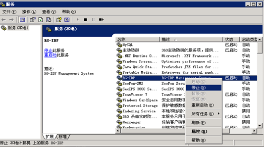 2)若管理服务器以[服务]的方式启动,则停止RG-IDP的服务。