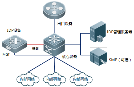 1、SMP服务器为可选;SMP联动:IDP通过SNMP协议将攻击事件上传至SMP服务器;