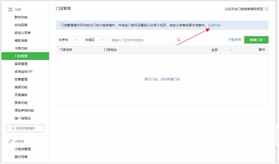 如果通过微信审核,则插件升级成功,左侧导航的原门店管理则被替换为门店小程序。门店的新增、删除、修改、查看功能可继续使用。