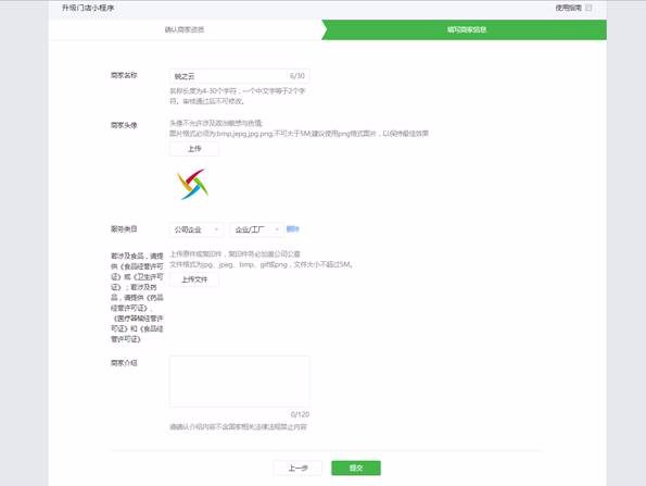 商家介绍:即小程序介绍,将展示在小程序介绍页。
