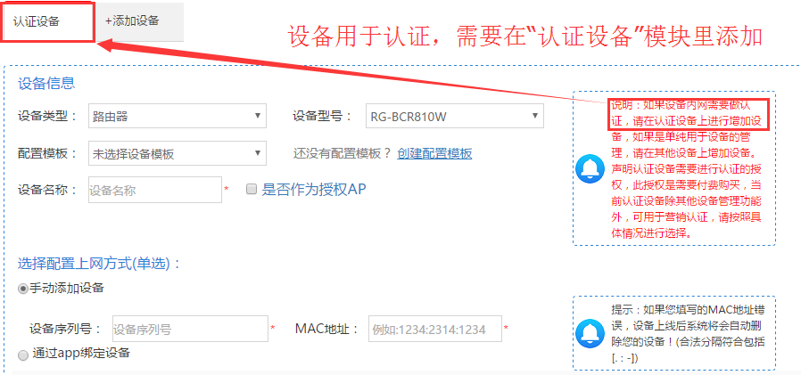 1、确认online上添加设备是在认证设备选项卡里添加的,而不是新建