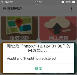 20、认证终端,自动唤起微信的时候,提示如下报错:”appId and shopId not registered"