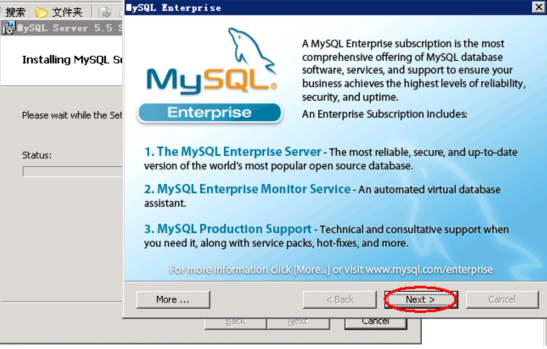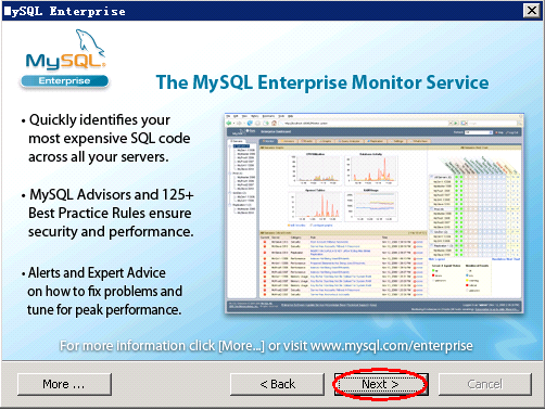 6) 安装过程中,安装向导会弹出“MySQL Enterprise”的介绍页面,直接点击“Next”按钮。