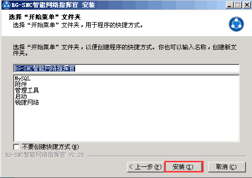 6、安装程序相关配置已经设置完成(如下图所示),选择开始菜单中的快捷程序名称,点击“安装”按钮开始安装RG-SNC。