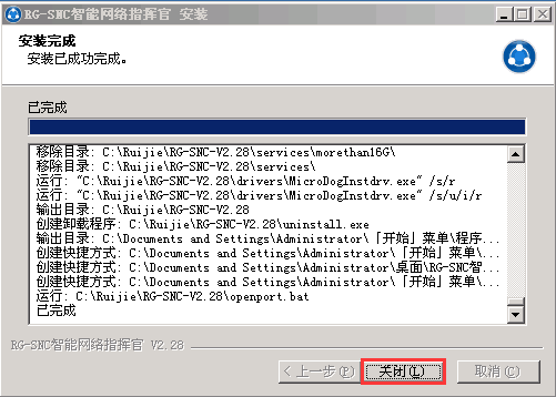 7、RG-SNC安装成功,点击“完成”按钮,就完成了安装步骤。