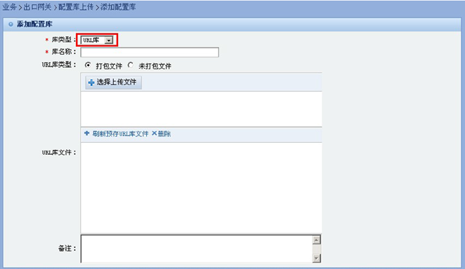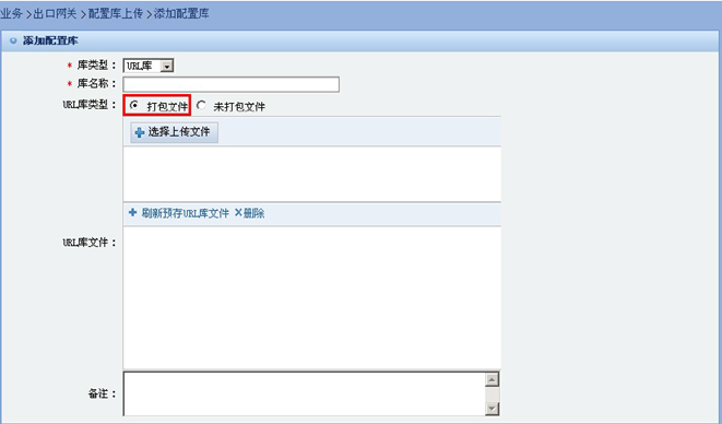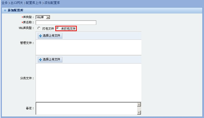 4. 在“添加URL库”页面,选择URL库类型为“未打包文件”,将显示未打包的URL库管理文件和URL分类文件的添加信息。如下图所示: