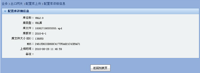 注:此页面单击“返回”按钮,系统不会保存新增的库信息,直接返回“配置库上传”页面。