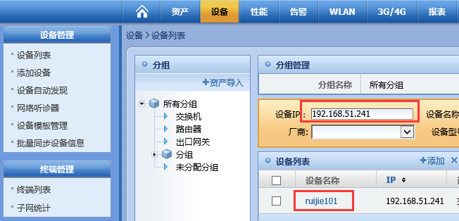 1)、点击“设备”,进入设备管理页面,并单击相应设备名称进入设备详细信息页面。