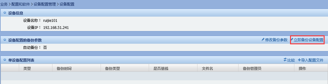 3)、在弹出的设备配置页面,点击“立即备份设备配置”。