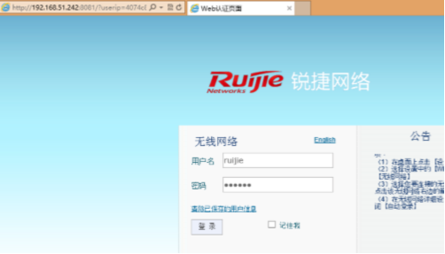 用户连接到无线网络,打开网页弹出认证界面,输入密码提示认证正常并且能正常使用网络。
