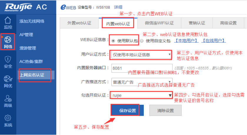 Web认证是一种对用户访问网络的权限进行控制的身份认证方法,这种认证方法不需要用户安装专用的客户端认证软件,使用普通的浏览器软件就可以进行身份认证。适合无线终端不想或不能安装认证客户端(特别是手机、平板电脑等)但是又想对网络中的客户做准入控制