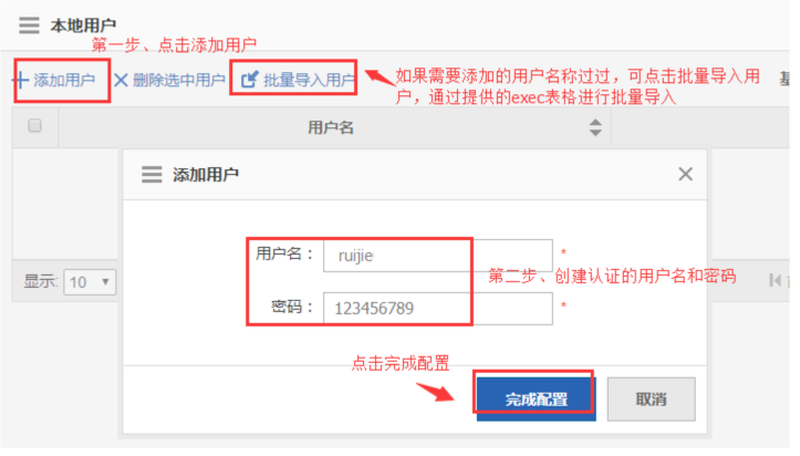 3、创建本地认证的用户名和密码,如下图