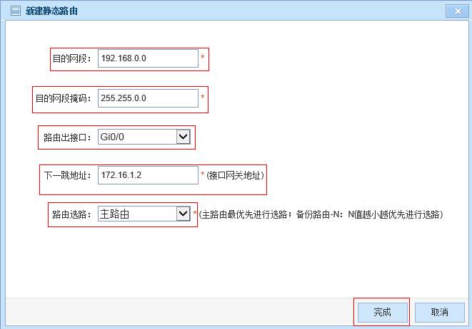 route 192.168.0.0 255.255.0.0 172.16.1.2 ------->配置去往内网的回指汇总路由