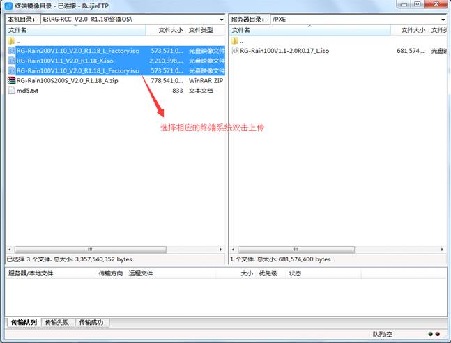 步骤1:上传终端系统OS,并启动所有RAIN终端