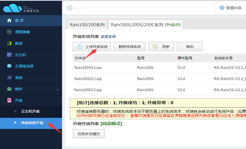 | 云课堂解决方案产品一本通 >> 如何维护云课堂 >> 版本升级 >> Rain终端升级 >> |