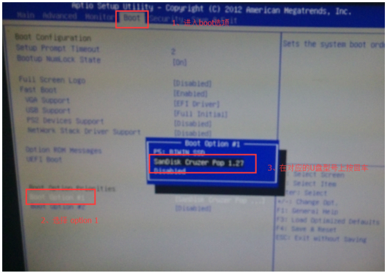4、 将U盘插入终端,重启终端,Rain100按f2或者delete键进入BIOS进行启动项的设置,之后按f4保存退出: