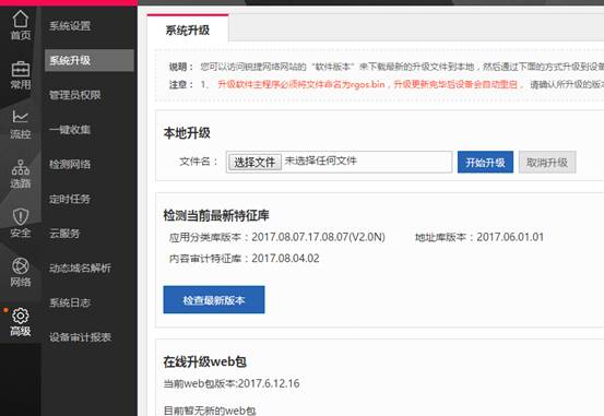 1.在升级的过程中不能关闭浏览器,等待设备重启完成后再进行操作